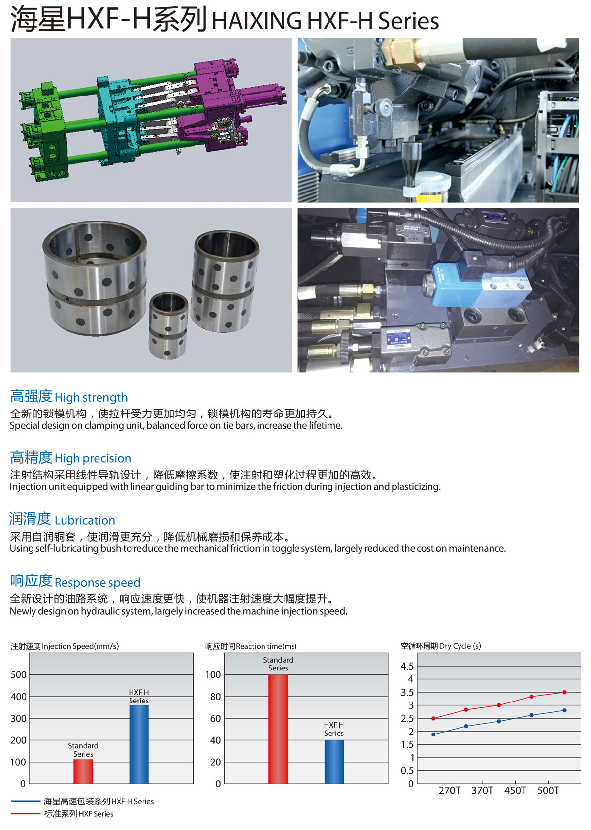 HXF-H系列高速包装专用注塑机,针对塑料包装类产品的成型而设计。适合瓶盖、快餐盒及其他薄壁包装类容器等产品的高速注射成型。技术先进,设计合理,运行可靠。连续生产成型周期缩短。